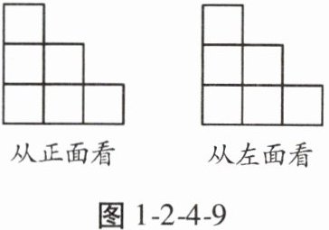 7. 如图1-2-4-9是由若干个小立方块组成的几何体从正面和左面看到的形状图,则该几何体最多可由多少个小立方块组合而成?(