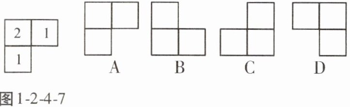 5. 一个几何体由大小相同的小立方块搭成,从上面看到的几何体形状图如图1-2-4-7所示,其中小正方形中的数字表示在该位置的小立方块的个数,则从正面看这个几何体得到的形状图是(