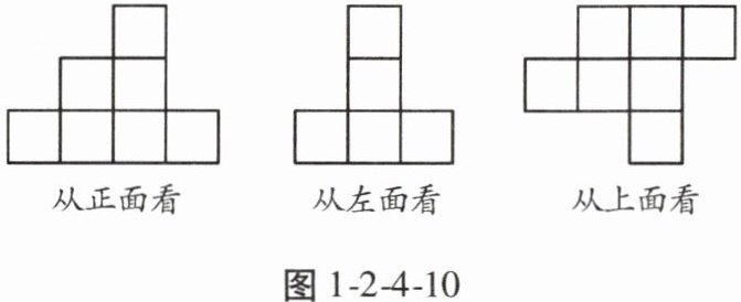 8. 如图1-2-4-10是由一些相同的小立方块搭成的几何体从三个不同方向看到的形状图,若在所搭几何体的基础上(不改变原几何体中小立方块的位置)继续添加相同的小立方块,搭成一个大立方体,至少还需要