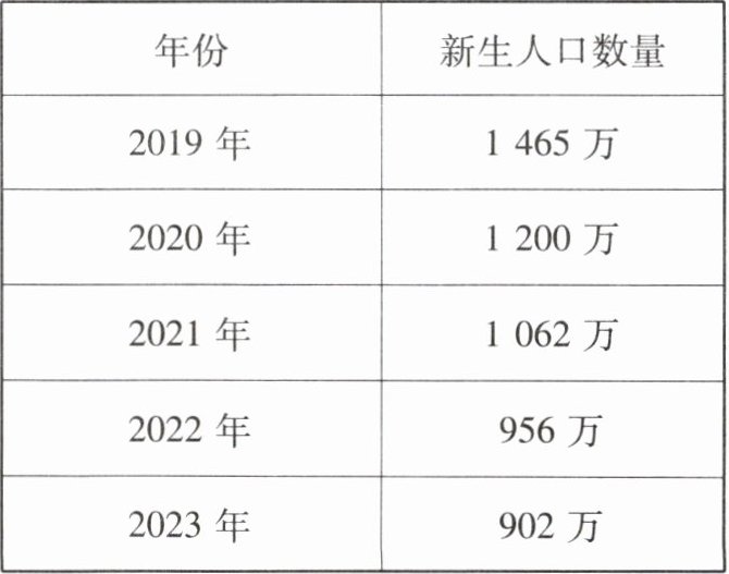 (2)(人口社会)下表是2019年至2023年我国新生人口数量的统计表: