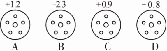 7. 一实验室检测A,B,C,D四个元件的质量(单位:g),超过标准质量的克数记为正数,不足标准质量的克数记为负数,其中最接近标准质量的元件是 (