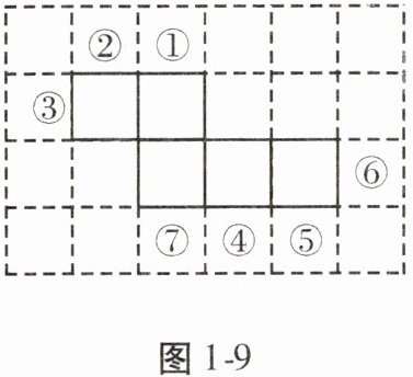 12. 如图1-9,在方格图中,需要添加1个正方形,构成正方体的表面展开图,可以添加的位置为: