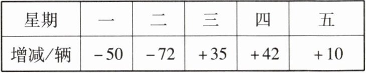 |增减/辆|-50|-72|+35|+42|+10|
