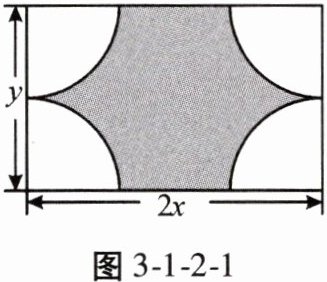 【例1】如图3-1-2-1,在一块长为2x,宽为y(2x>y)的长方形铁皮的四个角上,分别截去半径都为$\frac{y}{2}的\frac{1}{4}$个圆。