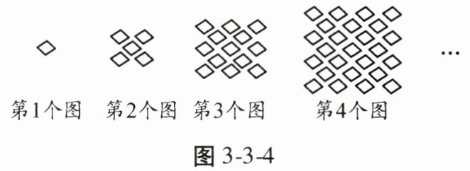 5. 海南黎锦有着悠久的历史,已被列入世界非物质文化遗产名录。如图 3 - 3 - 4 是黎锦上的图案,每个图案都是由相同菱形构成的,若按照第 1 个图至第 4 个图中的规律编织图案,则第 5 个图中有