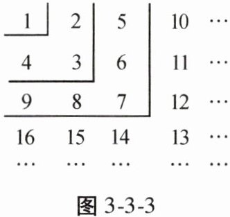 3. 将从 1 开始的自然数按图 3 - 3 - 3 规律排列,例如位于第 3 行第 4 列的数是 12,则位于第 45 行第 4 列的数是(