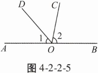 5. (2025陕西中考)如图4-2-2-5,点O在直线AB上,OD平分∠AOC,若∠1 = 52°,则∠2的度数为(