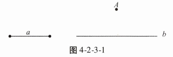 【例1】如图4-2-3-1,已知一条线段的长为a,点A在直线b外,在直线b上找一点B,使点B到点A的距离等于a。