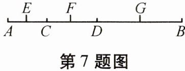 7. 如图,$ C $,$ D $ 将线段 $ AB $ 分成 $ 2:3:4 $ 三部分,$ E $,$ F $,$ G $ 分别是 $ AC $,$ CD $,$ DB $ 的中点,且 $ EG = 12 cm $,求 $ AF $ 的长。