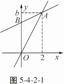 3. 如图 5-4-2-1,已知一次函数 $ y = \frac{1}{2}x + m $ 和 $ y = 2x $ 的图象都经过点 $ A(2,b) $,且与 $ y $ 轴交于 $ B $ 点,$ O $ 为坐标系原点,那么 $ \triangle AOB $ 的面积是______。