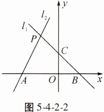 【例 1】如图 5-4-2-2,过点 $ (2, -1) $ 的直线 $ l_1: y = kx + b $ 与直线 $ l_2: y = 2x + 4 $ 相交于点 $ P(-1,a) $。