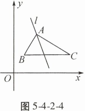 3. 如图 5-4-2-4,在平面直角坐标系中,已知点 $ A(2,4) $,$ B(1,2) $,$ C(5,2) $,直线 $ l $ 经过点 $ A $,它将 $ \triangle ABC $ 分成面积相等的两部分,则直线 $ l $ 的表达式为______。