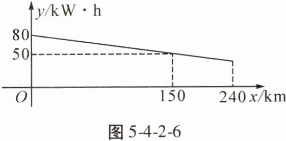 8. (2024 陕西中考) 我国新能源汽车快速健康发展,续航里程不断提升,王师傅驾驶一辆纯电动汽车从 A 市前往 B 市,他驾车从 A 市一高速公路入口驶入时,该车的剩余电量是 $ 80 kW \cdot h $,行驶了 $ 240 km $ 后,从 B 市一高速公路出口驶出,已知该车在高速公路上行驶的过程中,剩余电量 $ y(kW \cdot h) $ 与行驶路程 $ x(km) $ 之间的关系如图 5-4-2-6。