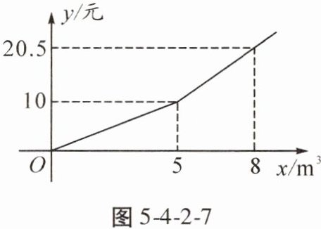 9. 为了节约用水,某市自来水公司采用分段收费标准,某户居民每月应交水费 $ y $(元)与用水量 $ x(m^3) $ 之间关系的图象如图 5-4-2-7,根据图象回答: