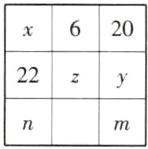 又根据题意可得$x + 22 + n = 20 + z + n$,$20 + y + m = x + z + m$,