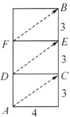 因为树干的高度为9m,底面周长为4m,所以小长方形的长和宽分别为4m和3m,根据勾股定理可得AC²=DE²=FB²=3²+4²=25,所以AC=DE=FB=5m,所以AC+DE+FB=5+5+5=15(m)。答:这段葛藤至少15m。