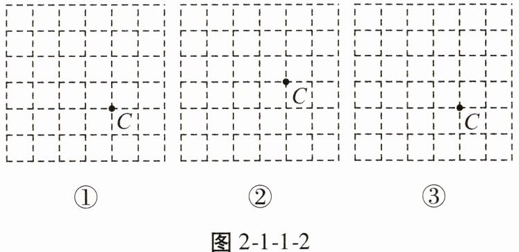 7. 如图2-1-1-2,在正方形网格中,每个小正方形的边长均为1。已知点C,请按要求设计△ABC,使∠ACB = 90°,AC = BC。
