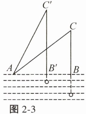8. 每到夜晚,人民公园的灯光在暗夜中熠熠生辉,照亮了河岸边的一片宁静,几位垂钓者静静坐在岸边,小心地将钓竿支在摇曳的水面上,专注地等待着鱼儿咬钩。如图2 - 3,已知钓鱼竿$AC的长为6m$,露在水面上的鱼线$BC长为3\sqrt{2}m$,某钓者想看看鱼钩上的情况,把鱼竿$AC转动到AC'$的位置,此时露在水面上的鱼线$B'C'为\sqrt{34}m$,则$BB'$的长为( )
