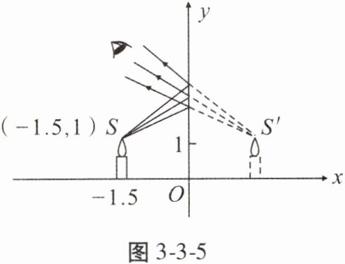 1. 如图 3 - 3 - 5,这是平面镜成像的示意图,若以蜡烛的底部和平面镜中像的底部连线所在直线为 $x$ 轴,平面镜所在的竖线为 $y$ 轴(镜面厚度忽略不计)建立平面直角坐标系,某时刻火焰顶部 $S$ 的坐标是 $(-1.5,1)$,则此时对应的虚像 $S'$ 的坐标是( )