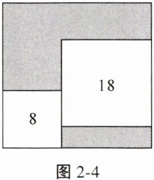12. 如图2 - 4,从一个大正方形中截去面积分别为$8和18$的两个小正方形,则图中阴影部分的面积为______。