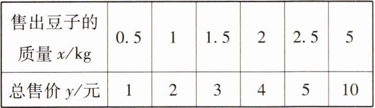 (2)由表格信息可得,豆子售出5 kg的总售价为10元。