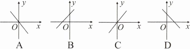 2. 已知正比例函数 $ y = kx(k \neq 0) $,当 $ x = -1 $ 时,$ y = -1 $,则它的图象大致是( )