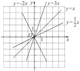 (2)观察这些函数的图象可以发现,随|k|的增大,直线与y轴的夹角减小。