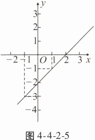 【例 2】根据图 4 - 4 - 2 - 5 中一次函数 $ y = kx + b $ 的图象,直接写出下列问题的答案: