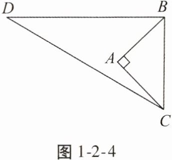 4. 如图 1 - 2 - 4,∠BAC = 90°,AB = 4,AC = 4,BD = 7,DC = 9,则∠DBA = ______。