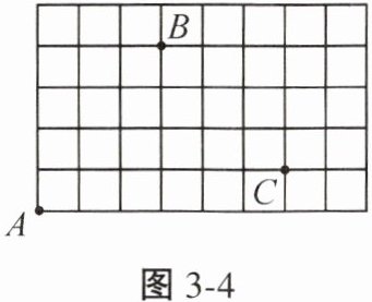 10. 如图3-4,每个小方格都是边长为1个单位长度的正方形,如果用$(0,0)表示A$点的位置,用$(3,4)表示B$点的位置,那么用______表示$C$点的位置。