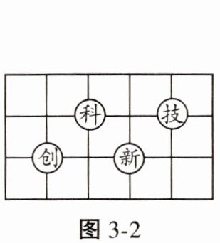 6. (2024贵州中考)为培养青少年的科学态度和科学思维,某校创建了“科技创新”社团。小红将“科”“技”“创”“新”写在如图3-2所示的方格纸中,若建立平面直角坐标系,使“创”“新”的坐标分别为$(-2,0)$,$(0,0)$,则“技”所在的象限为( )