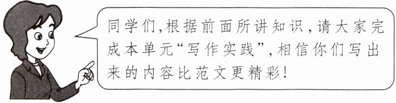 同学们,根据前面所讲知识,请大家完成本单元“写作实践”,相信你们写出来的内容比范文更精彩!