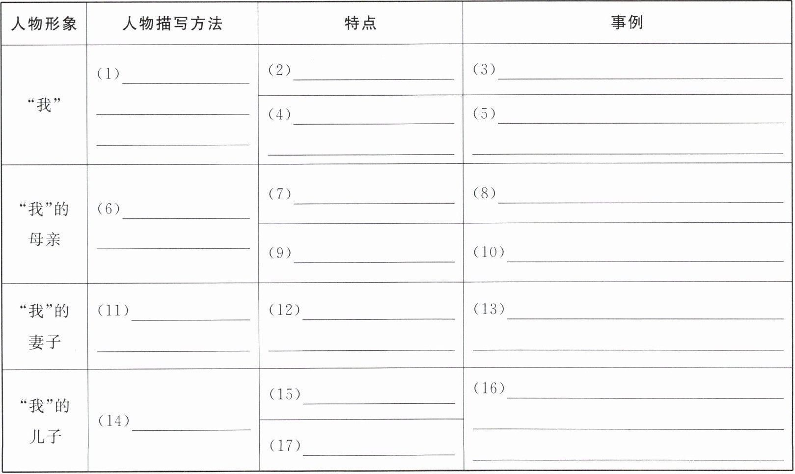 |“我”的母亲|(6)____|(7)____|(8)____|