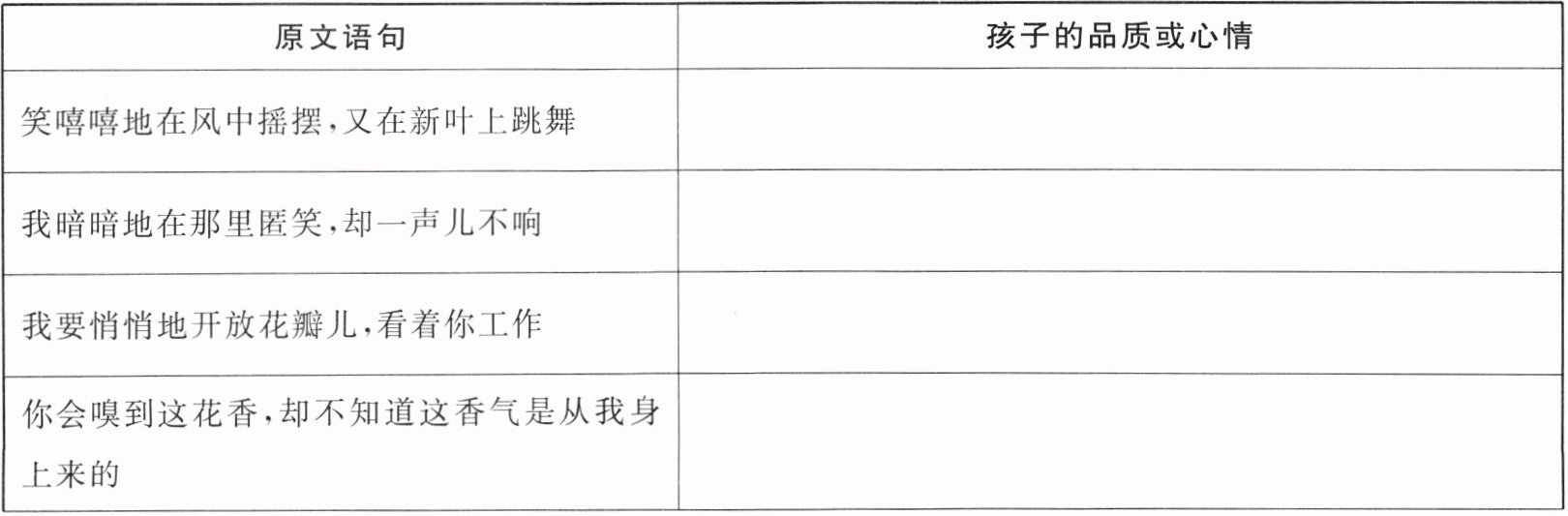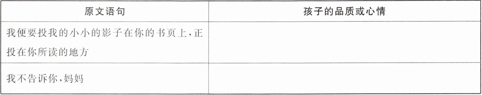 1. 请在对应的语句后面填写上孩子的品质或心情。