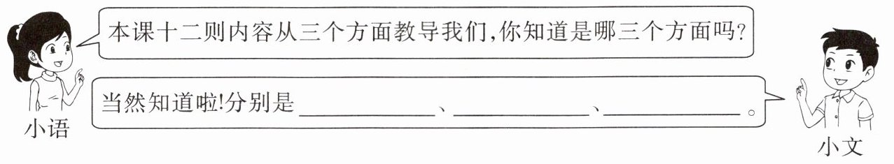 小语:本课十二则内容从三个方面教导我们,你知道是哪三个方面吗?