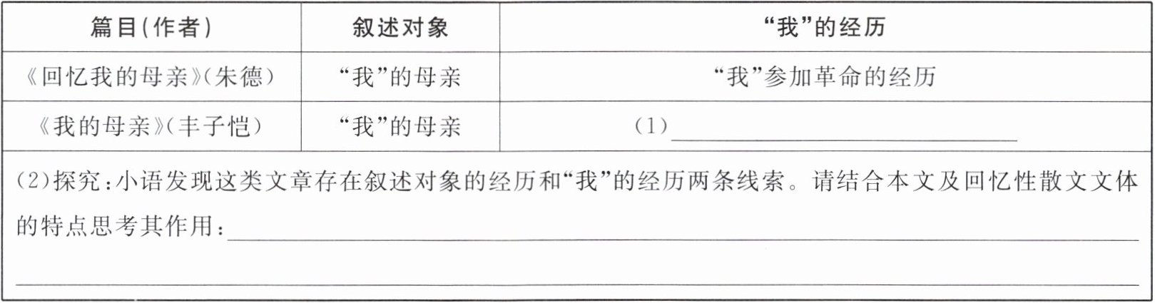 ”参加革命的经历||《我的母亲》(丰子恺)|“我”的母亲|(1)______|