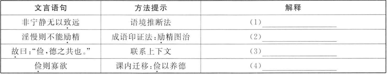 精图治|(2)______||故曰:“俭,德之共也。”|联系上下文|(3)______|