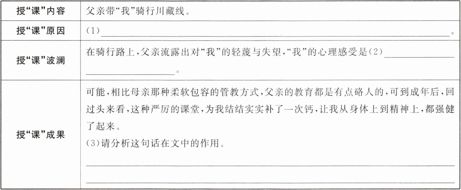 1.父亲给“我”上了一堂人生大课,请完善下列“课堂”信息。