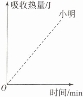 [解析]因为是使用相同的加热装置,所以在相同时间内,小明加热的水和小玉加热的水吸收的热量相同,吸收热量随时间变化的图像重合,如图所示。