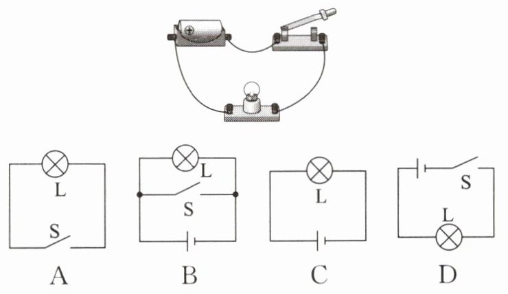 2. 如图所示,当只将小灯泡连入电路中,下列电路图与实物图对应的是(