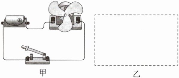 2. 如图甲所示是把电池和玩具电风扇连接起来的实物图,请在图乙方框中画出相应的电路图。(玩具电风扇只画核心部件电动机)