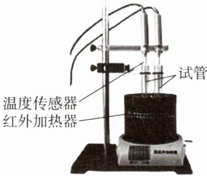 (1)如图所示,用铁夹将温度传感器及两个完全相同的试管正确地固定在铁架台上,两试管中分别盛有