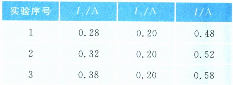 | 实验序号 | $I_1/A$ | $I_2/A$ | $I/A$ |