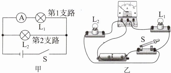 (1)明明按照电路图连接好如图乙所示电路,闭合开关,电流表的指针位置如图丙所示,能得到通过第1支路的电流为