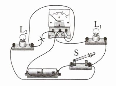 (2)由图乙可知,此时电流表测量通过$L_1$的电流,若使电流表测量干路电流,则可将$L_2$右端的接线改接到电流表“$0.6$”接线柱上,如图所示。
