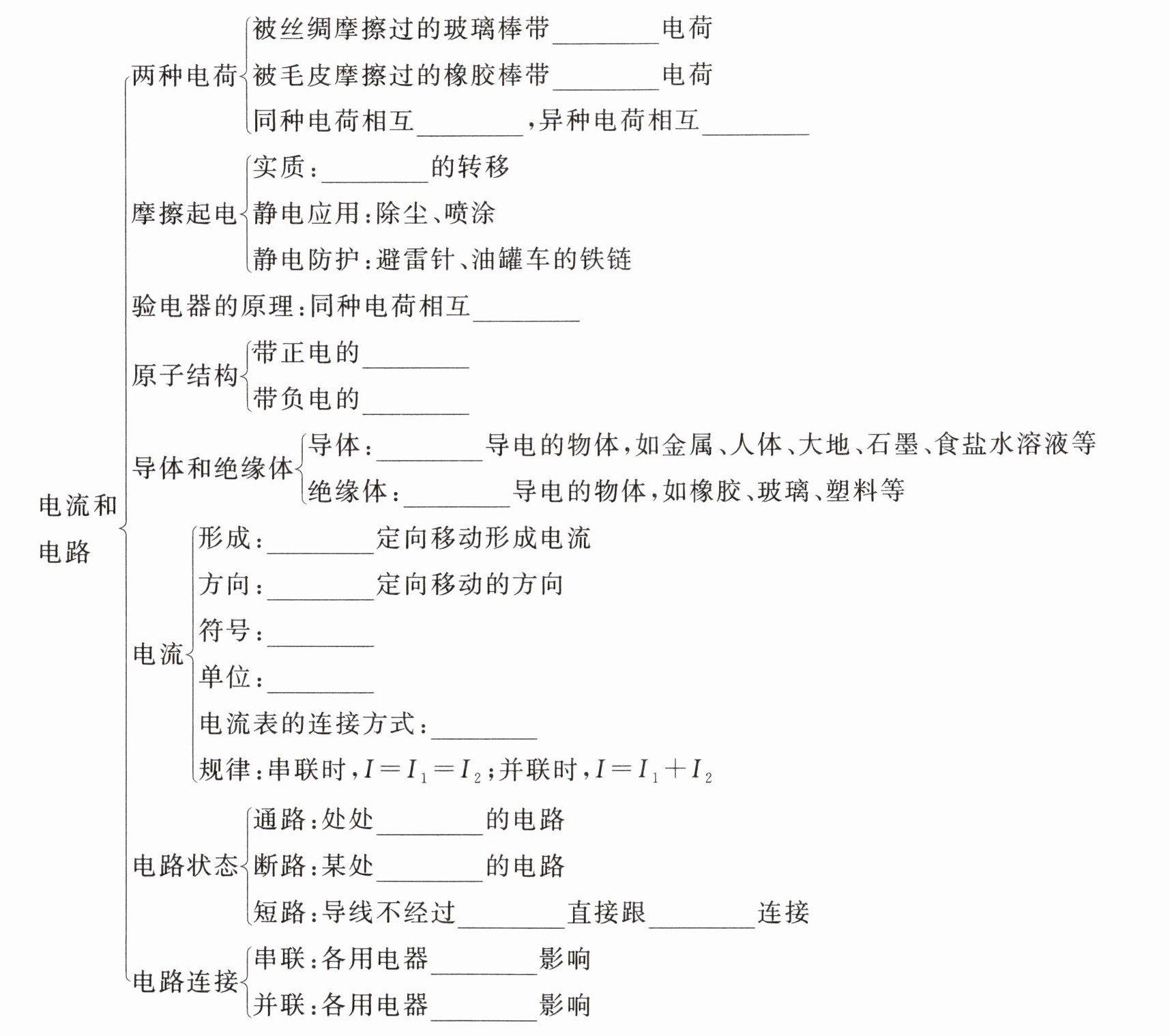 - 规律:串联时,$I = I_{1} = I_{2}$;并联时,$I = I_{1} + I_{2}$