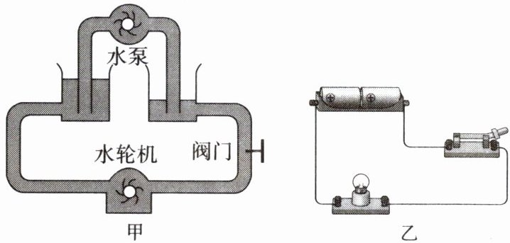 在学习电学,聪聪结合图甲、乙作出了以下类比,其中合理的是(