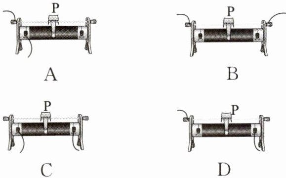 3. 如图所示是滑动变阻器的结构和接入电路的示意图,当刚开始实验时,其中连接正确且滑片应该处于左边的是(