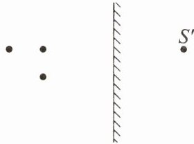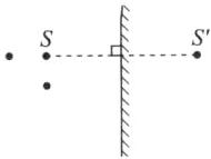 2. 如图所示,S'为点光源S在平面镜中所成的像,点光源S为图中平面镜左侧三点中的某一点,请利用平面镜成像特点作图确定点光源的位置并标出S。