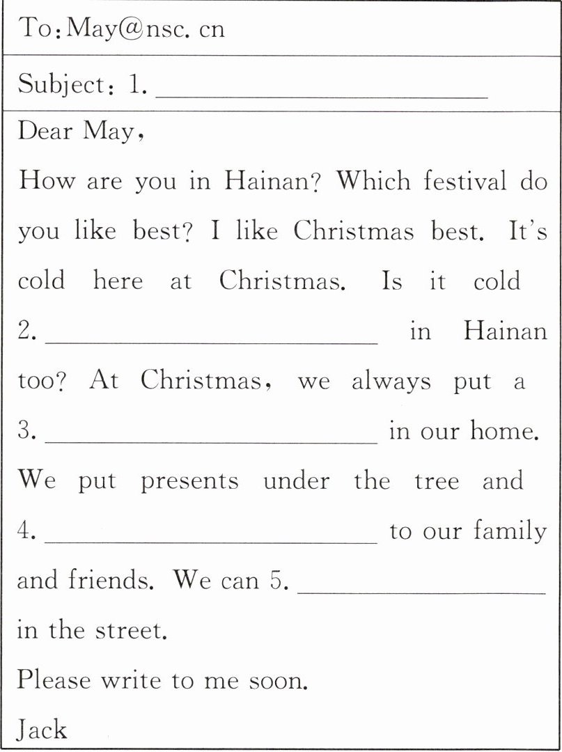 1. Favourite festival;2. in December;3. Christmas tree;4. send cards;5. see lights everywhere